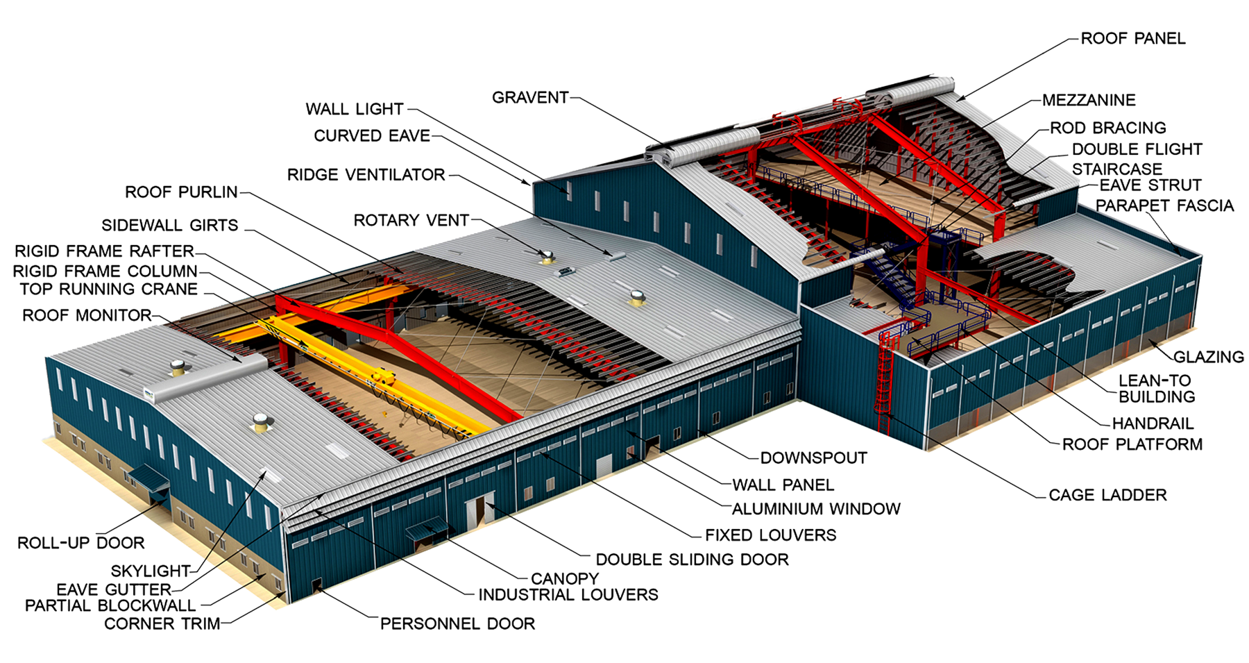 We produce & supply everything you need to build a pre-engineered steel structures building.